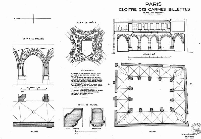 Cloître : plan, coupe et détails