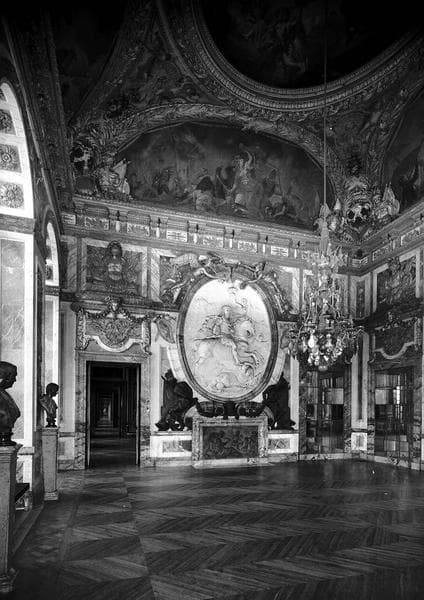 Intérieur, le salon de la guerre ; au fond, Louis XIV à cheval