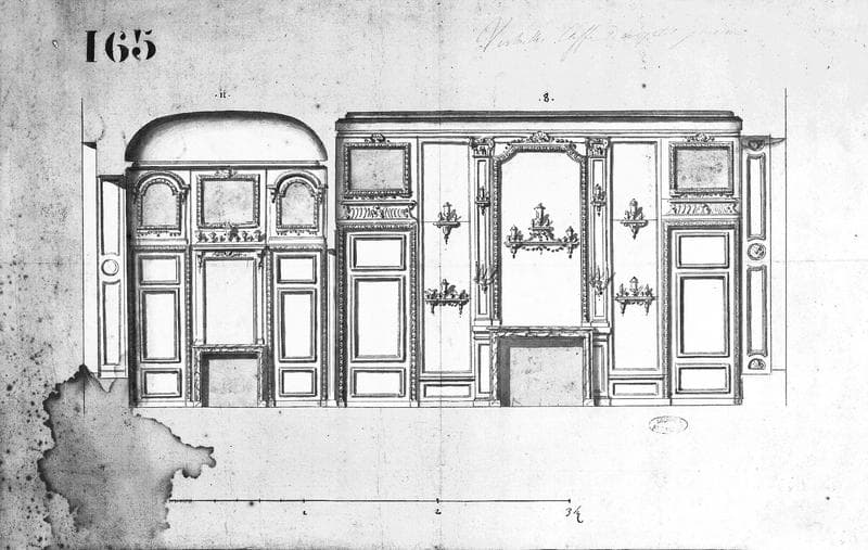 POP | Plateforme ouverte du patrimoineDessin : décoration intérieure d'un salon du côté du petit jardin, côté gauche