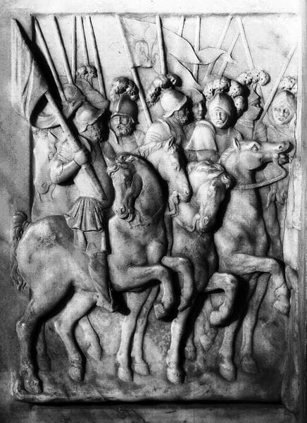 Tombeau de François 1er, de Claude de France et de leurs enfants. Bas-relief : guerrier à cheval