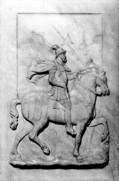 Tombeau de François 1er, de Claude de France et de leurs enfants. Bas-relief (retrait angle nord-ouest, face côté nord) : cavalier à cheval