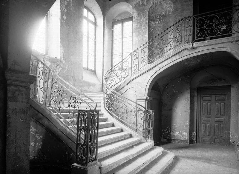 POP | Plateforme ouverte du patrimoineVue intérieure : départ de l'escalier avec rampe en fer forgé