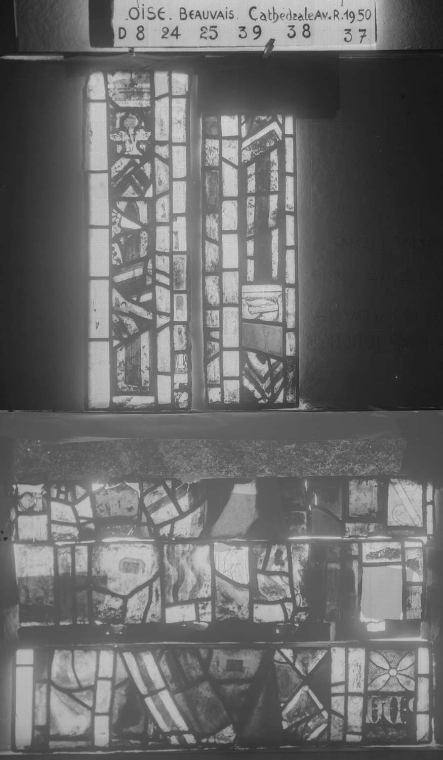 Baie D 8, panneau de vitrail 24 25 37 38 39