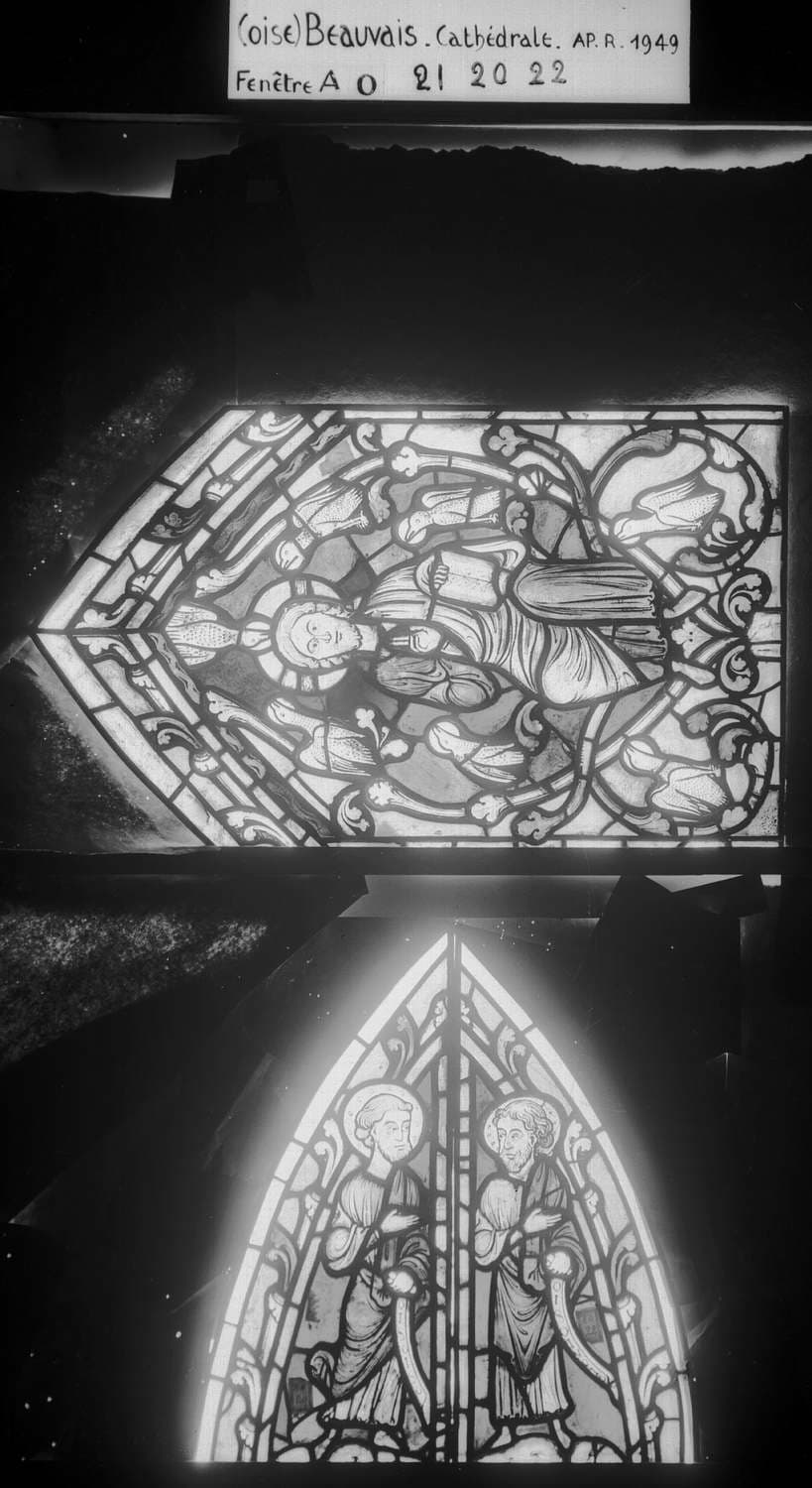 Arbre de Jessé et enfance de Jésus, chapelle de la Vierge, baie A 0, panneau de vitrail 20 21 22