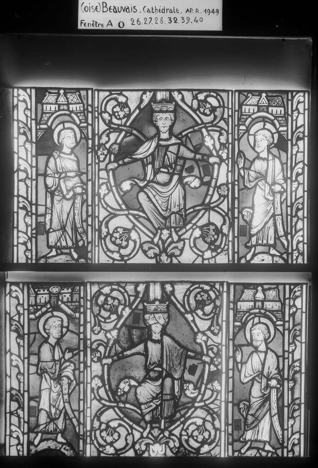 Arbre de Jessé et enfance de Jésus, chapelle de la Vierge, baie A 0, panneau de vitrail 26 27 28 32 39 40