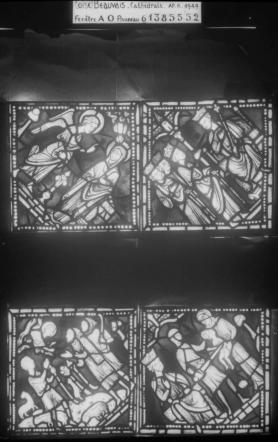 Arbre de Jessé et enfance de Jésus, chapelle de la Vierge, baie A 0, panneau de vitrail 52 55 61 58
