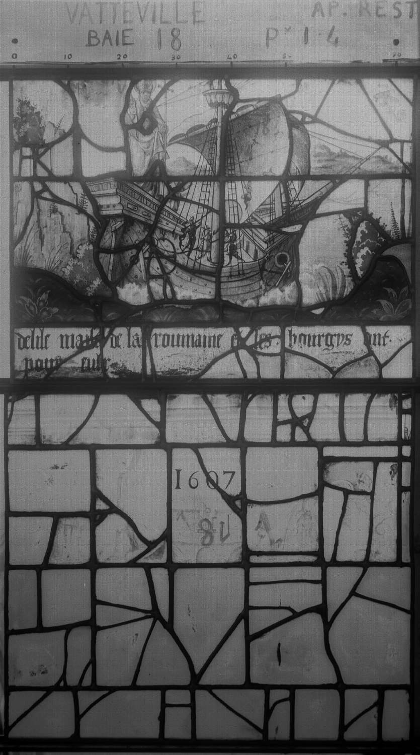 POP | Plateforme ouverte du patrimoineVierge à l'Enfant et saint Martin, baie XVIII, panneau de vitrail 1 4