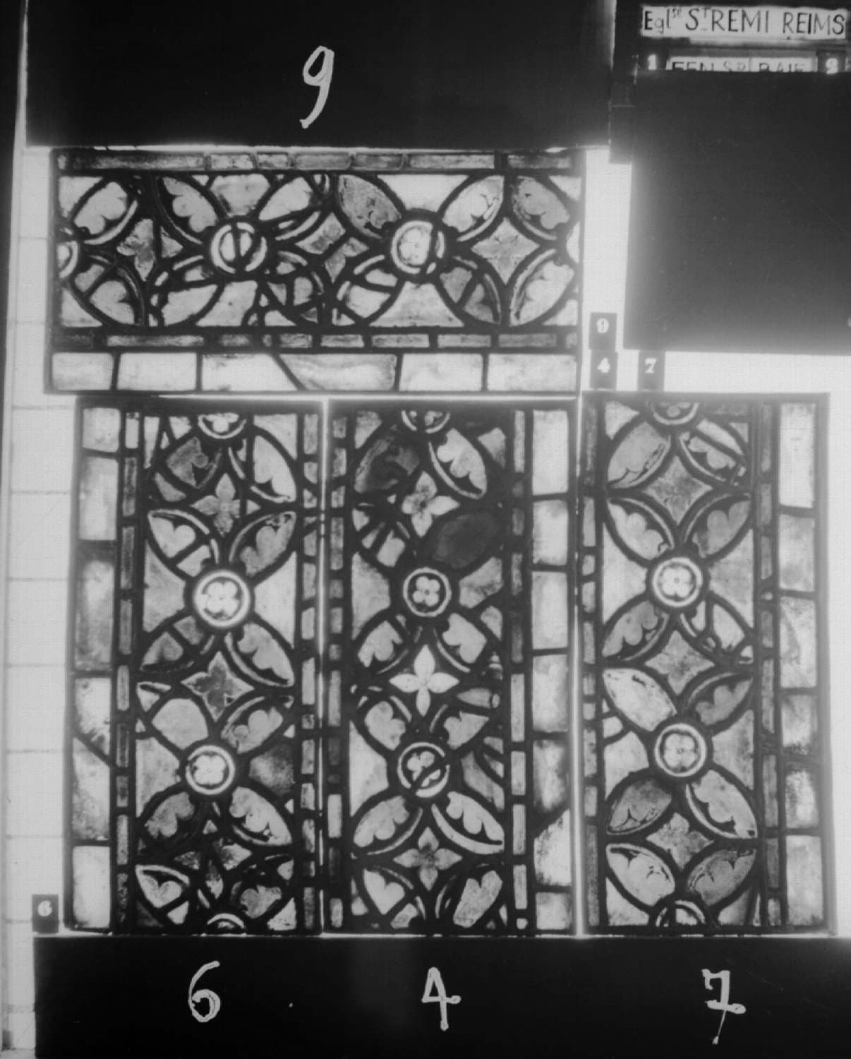 1e fenêtre S, baie 2, panneau de vitrail 4 6 7