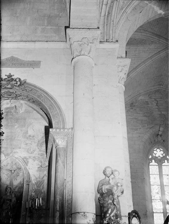 Intérieur, pile nord-est de la croisée du transept, face ouest : chapiteau et mur du croisillon nord
