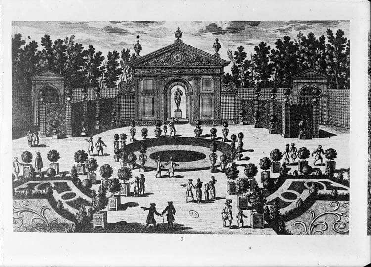 Treillages et portiques du jardin de Sylvie, d'après une estampe de Mariette