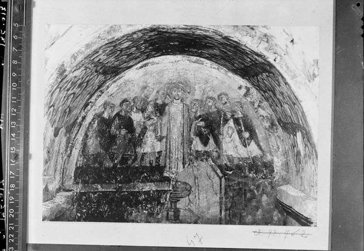 Crypte : peinture murale originale, saint Etienne cerné par les Juifs