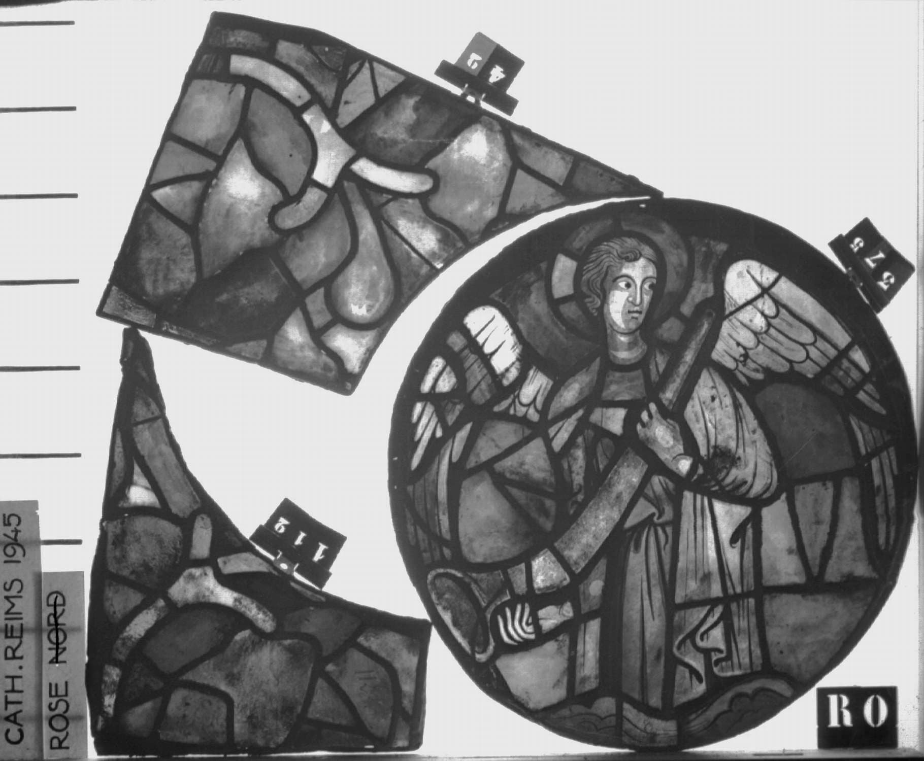 Anges musiciens, médaillon de la rose ouest, panneau de vitrail 42 112 375