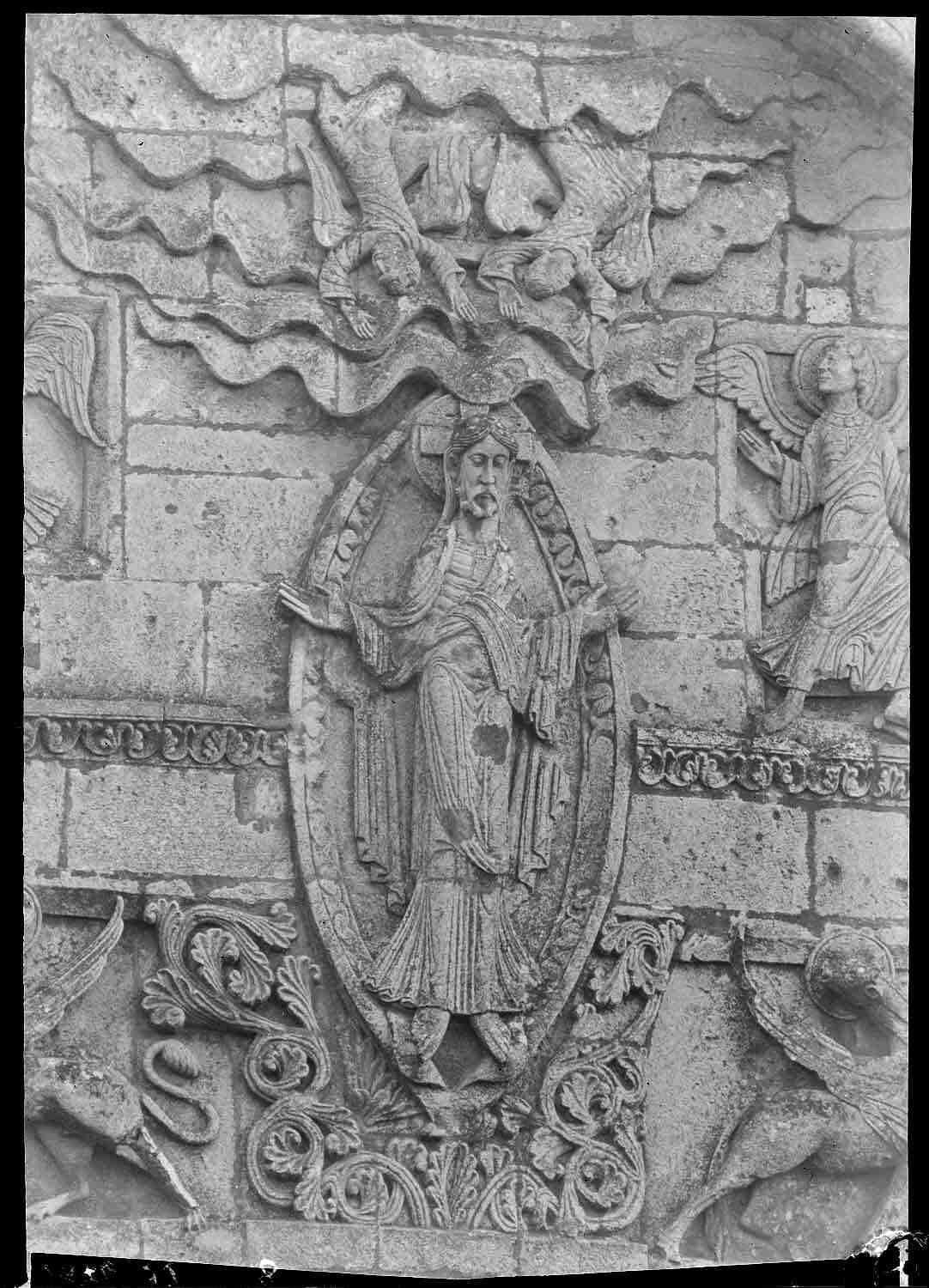 POP | Plateforme ouverte du patrimoinePartie supérieure de la façade ouest : relief central, le Christ en mandorle et le Tétramorphe