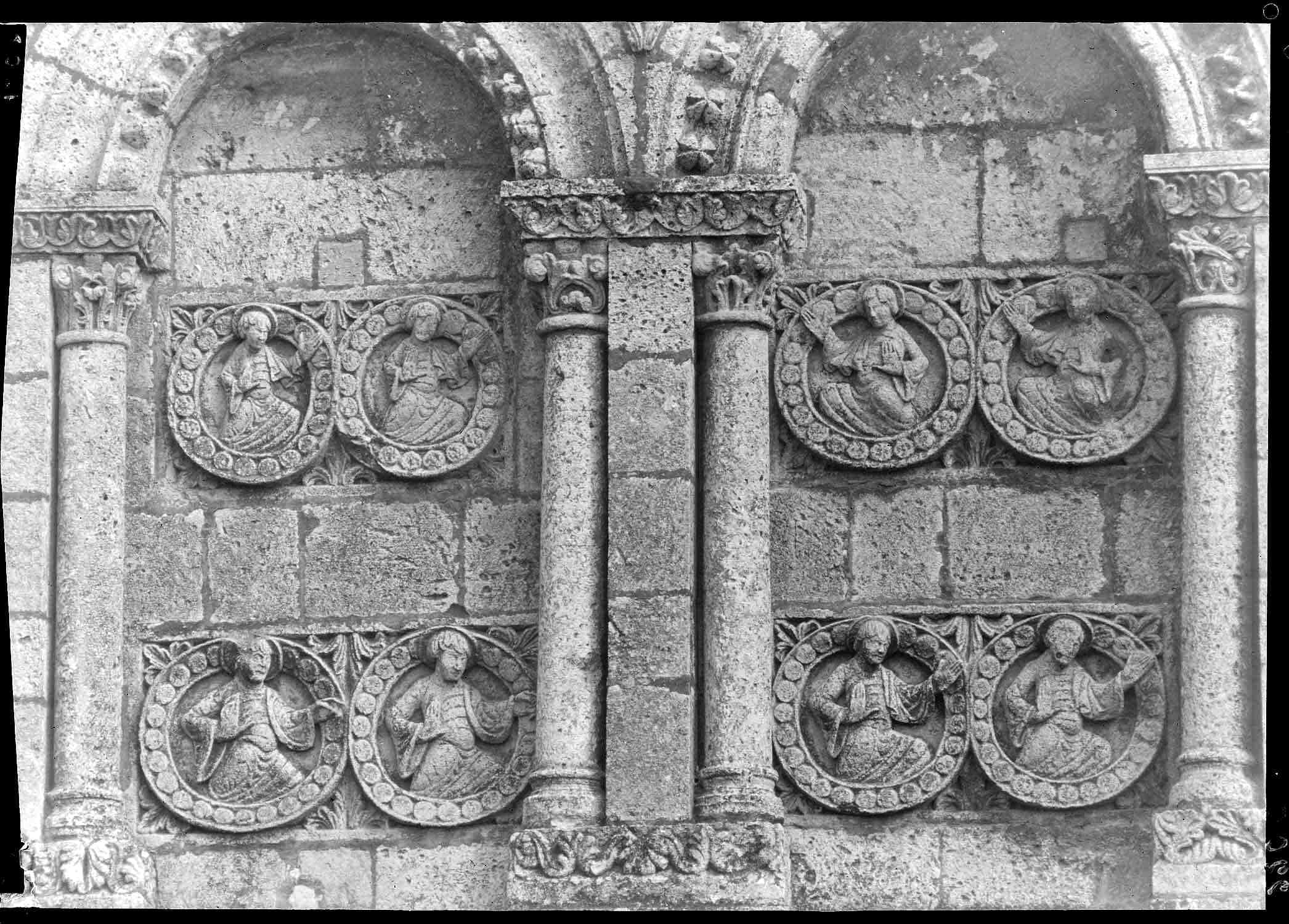 POP | Plateforme ouverte du patrimoinePartie supérieure de la façade ouest : arcatures du côté nord, les apôtres en médaillons