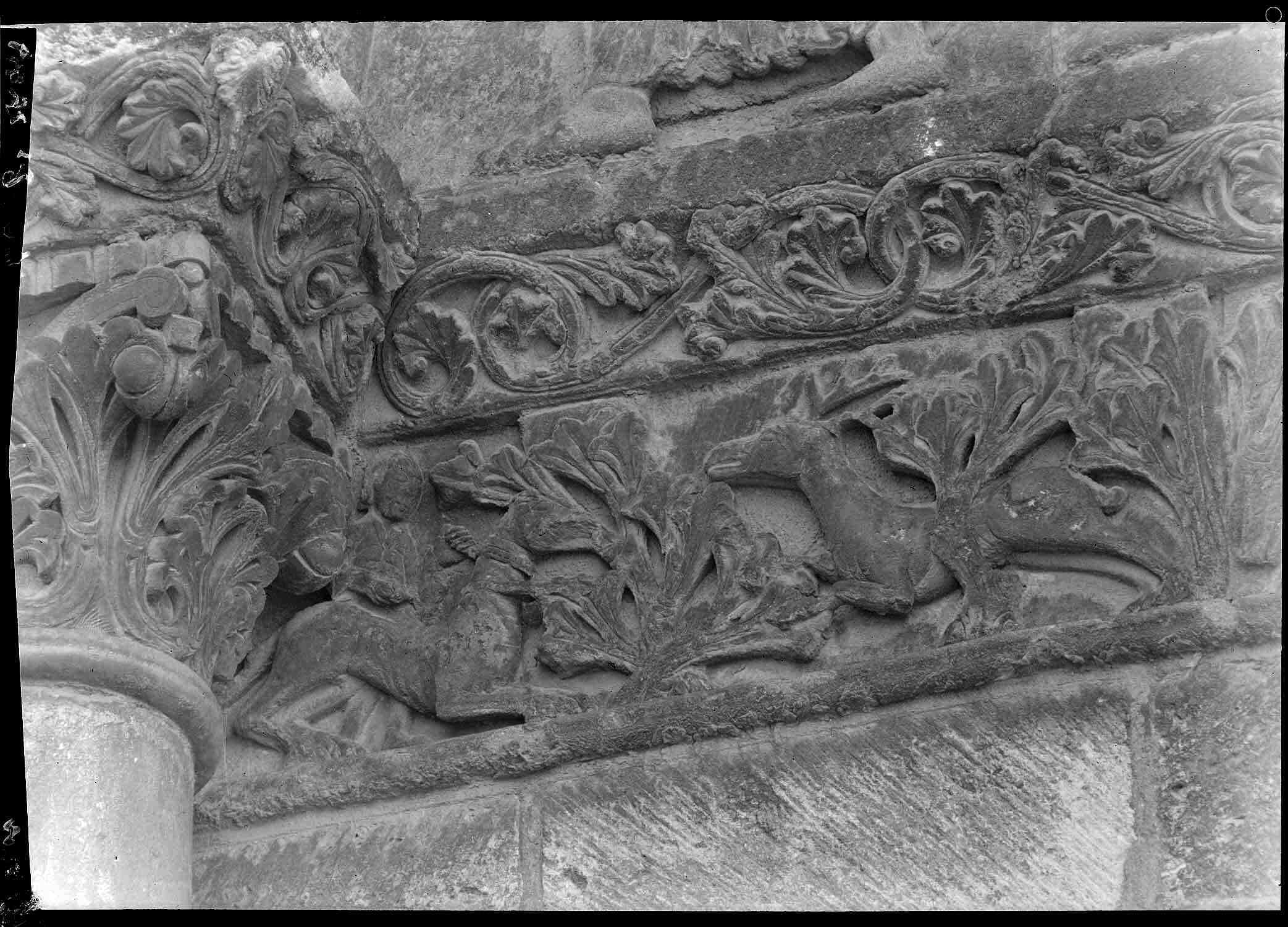 Partie inférieure de la façade ouest : frise de la 1e arcade, côté sud
