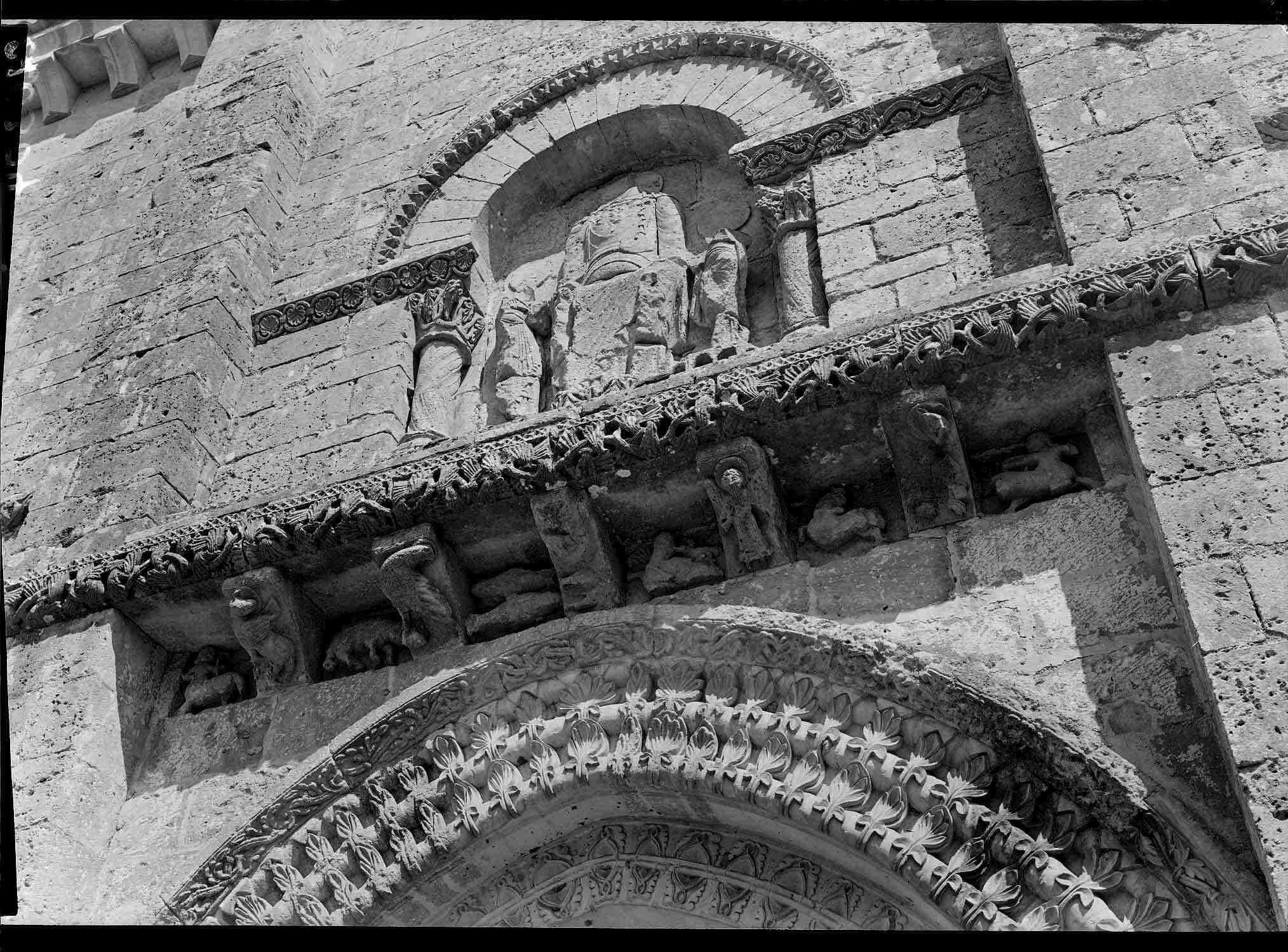 POP | Plateforme ouverte du patrimoineExtérieur, portail latéral sud : niche avec le Christ assis entre la Vierge et saint Jean