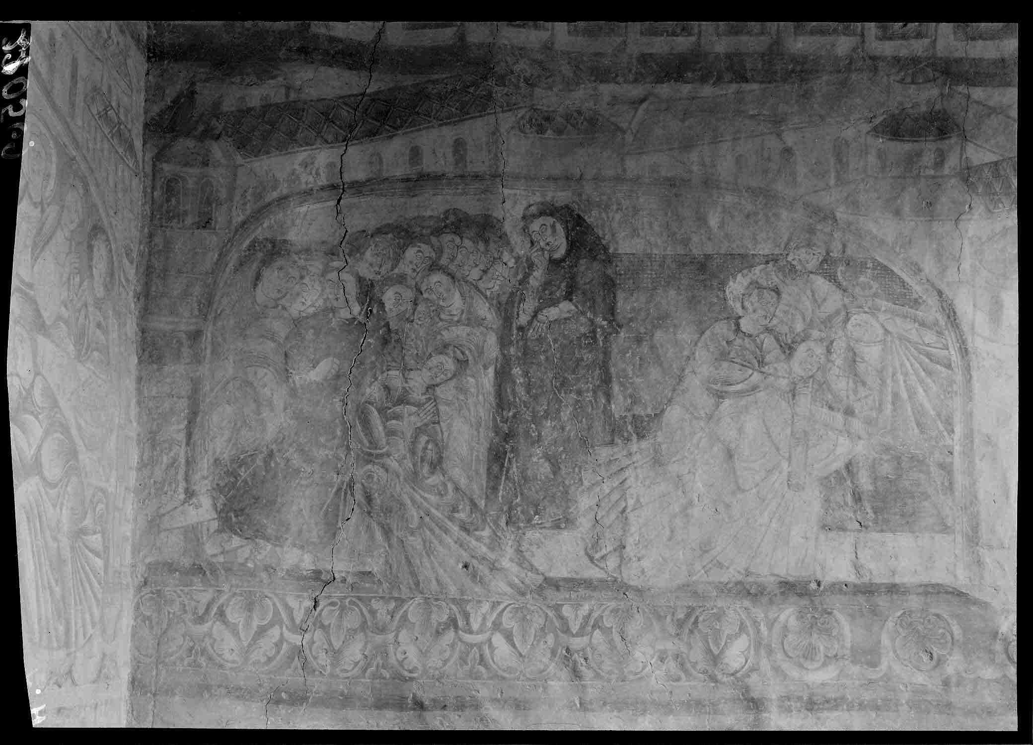 POP | Plateforme ouverte du patrimoinePeintures murales du mur nord du chœur, registre supérieur : Poitevins et Tourangeaux se disputent le corps de saint Martin