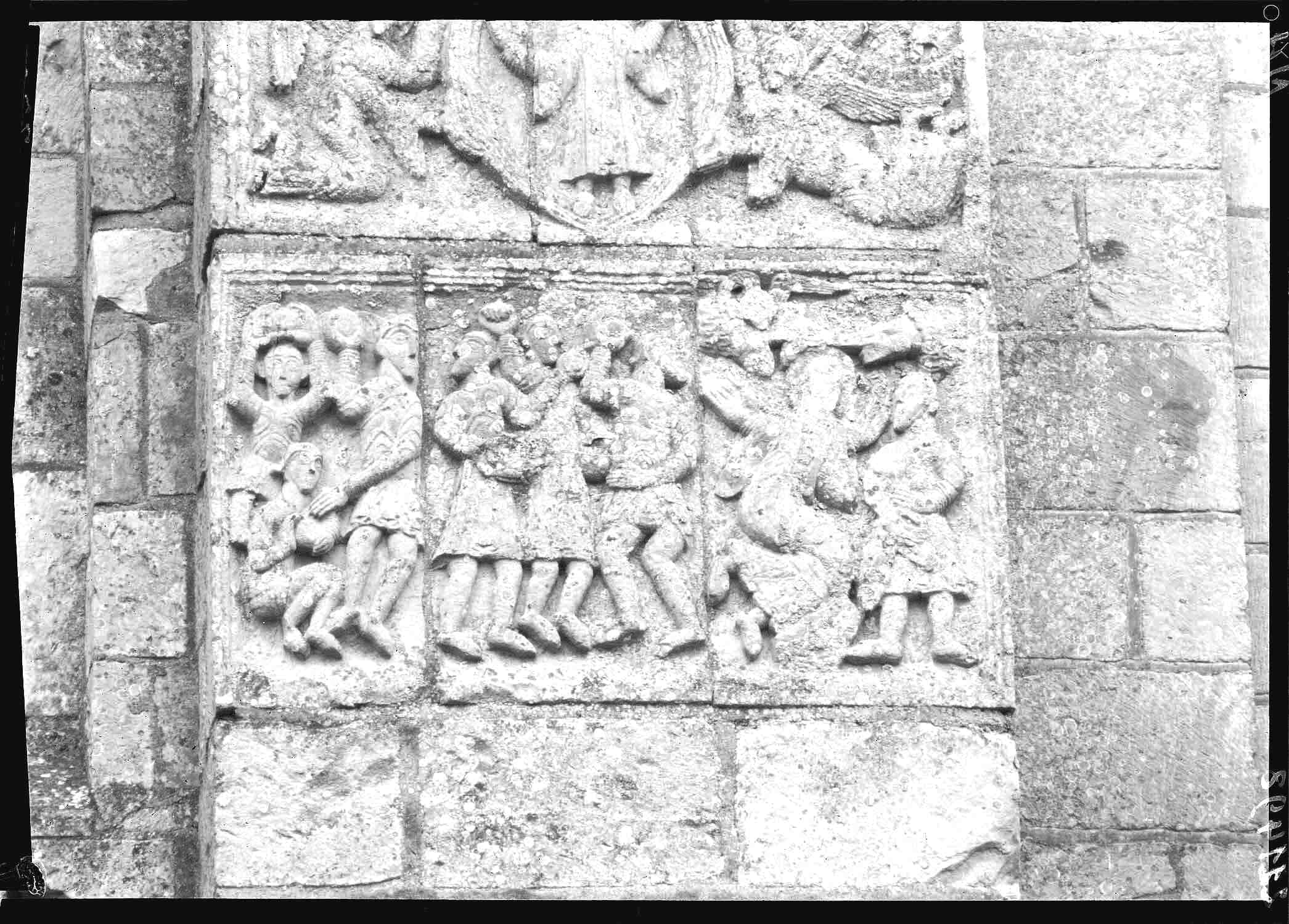 POP | Plateforme ouverte du patrimoineClocher face nord : relief encastrés dans le contrefort entre les travées 2 et 3 partie inférieure