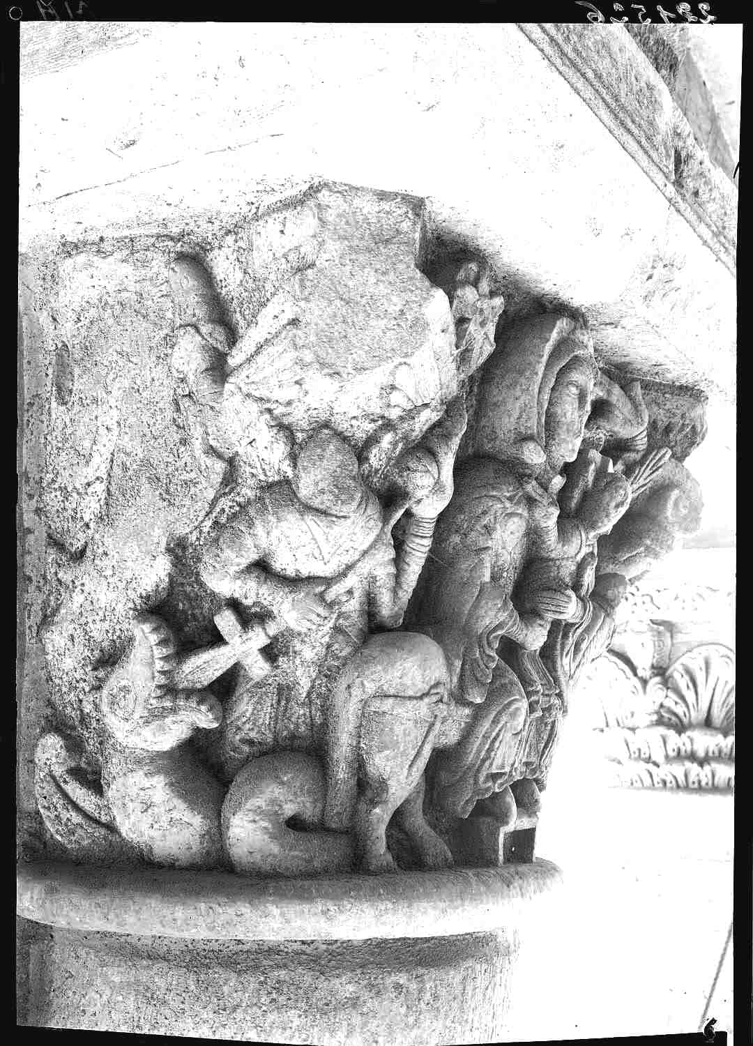 POP | Plateforme ouverte du patrimoineNarthex, pile 11, chapiteau nord : saint Michel terrassant le dragon