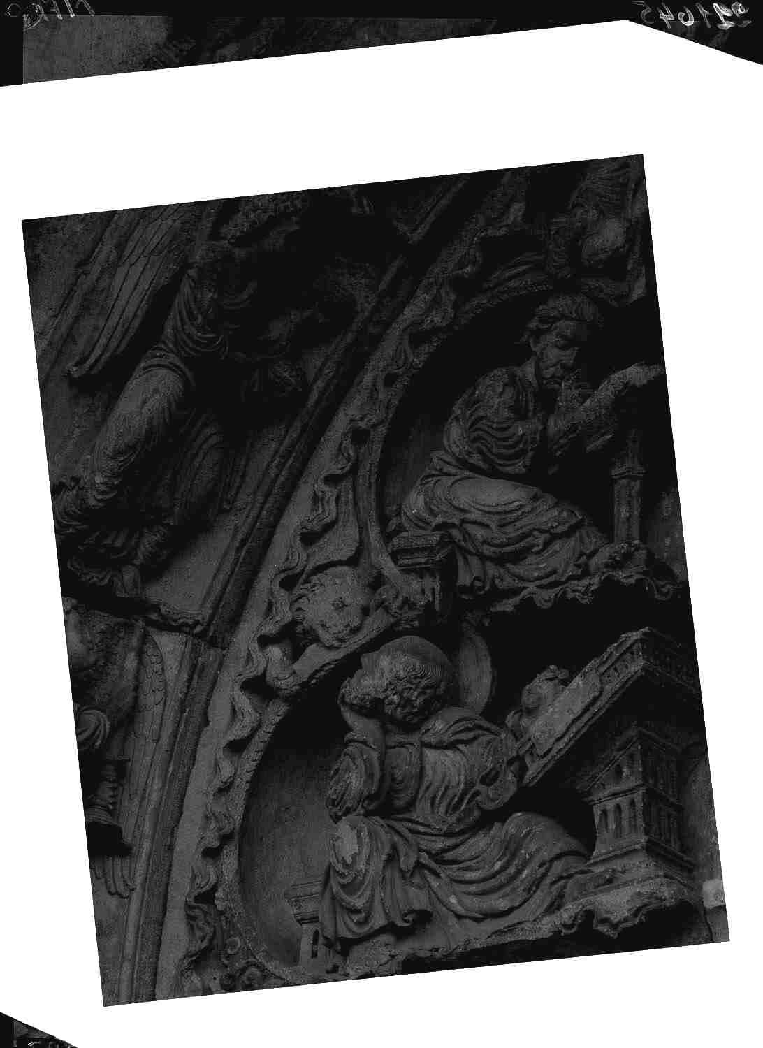 Portail de la façade nord, tympan : 2 évangélistes à droite du Christ