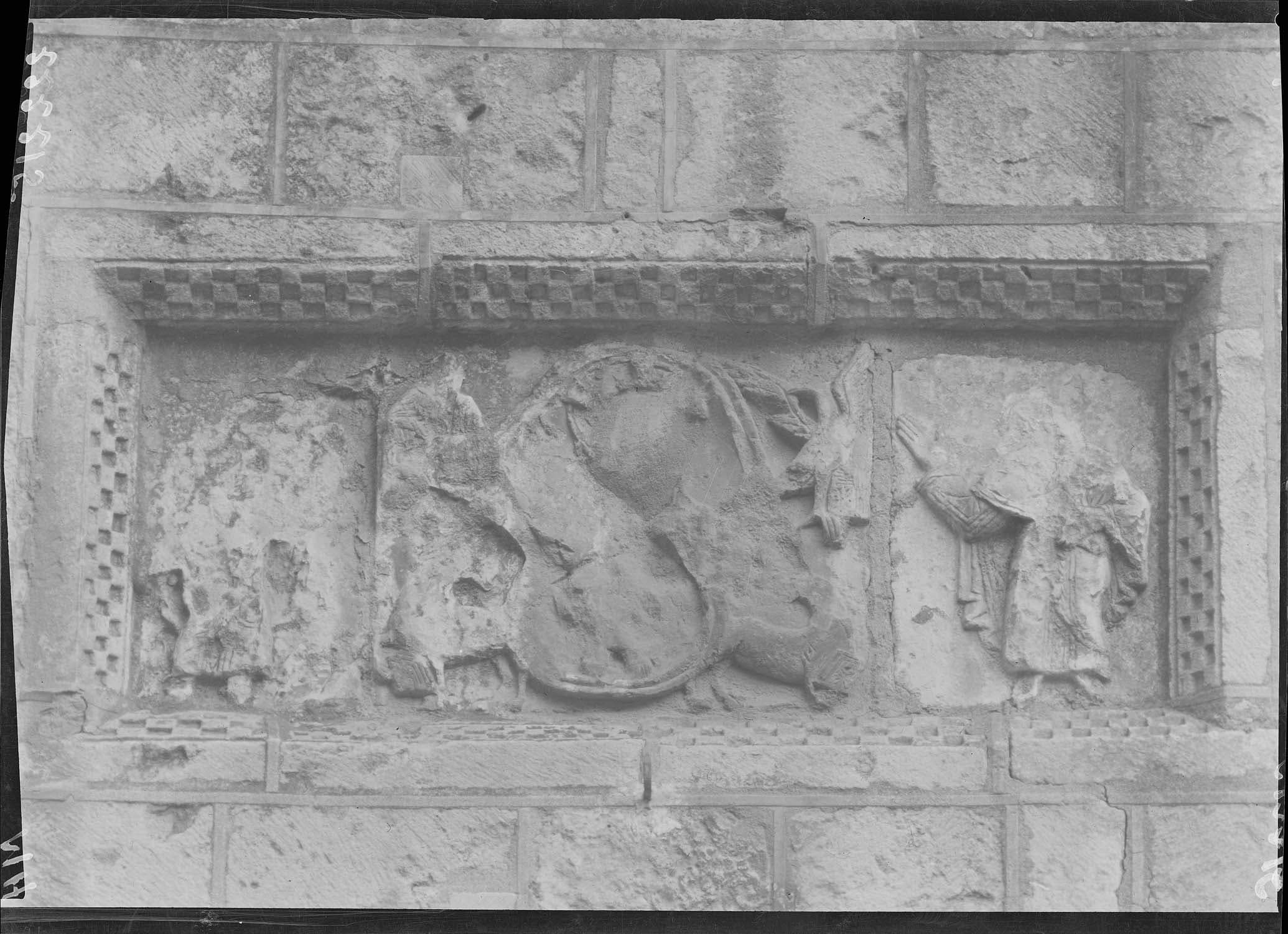 Extérieur, clocher-porche : relief encastré au-dessus du portail