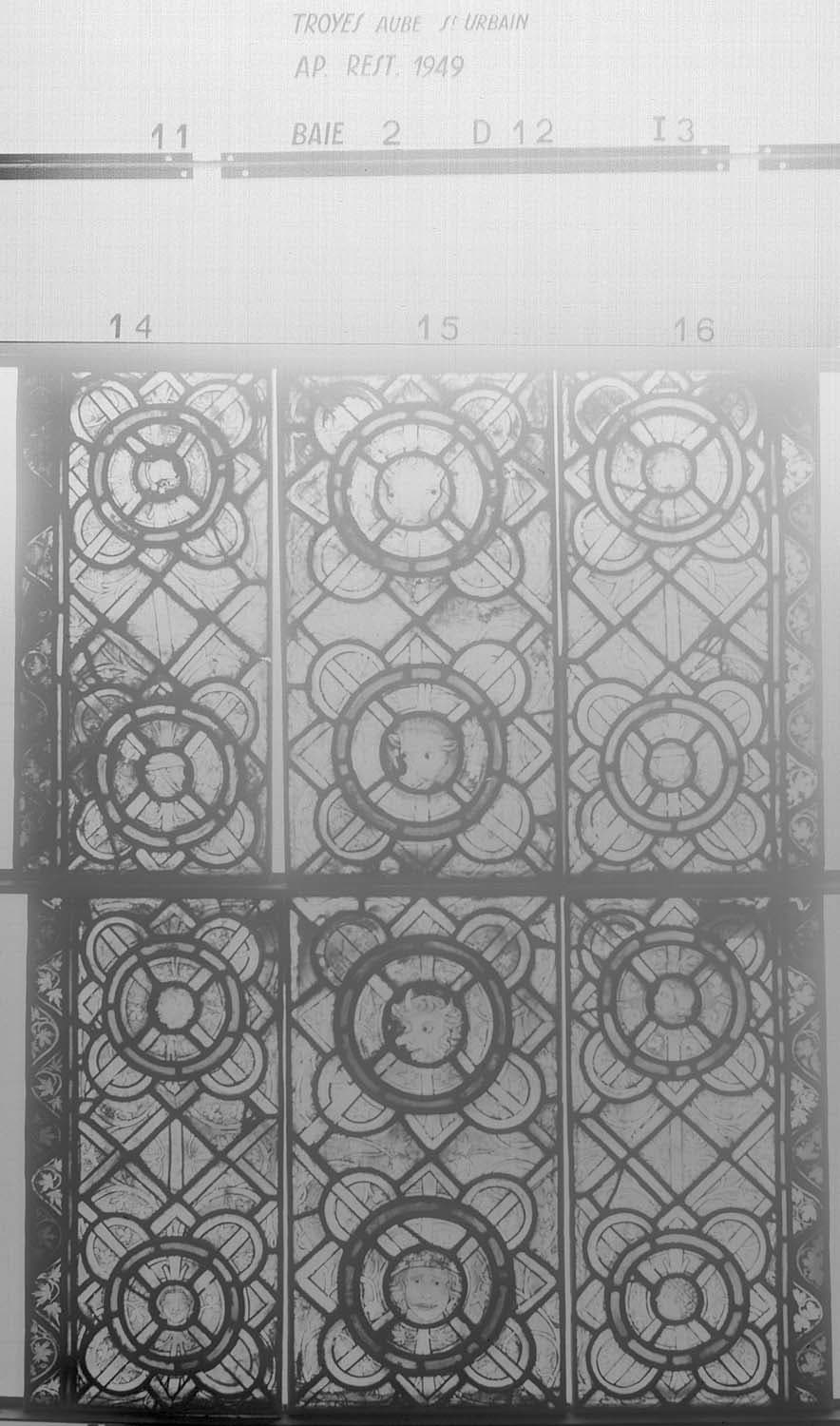 Baie 2 D, panneau de vitrail 11 12 13 14 15 16