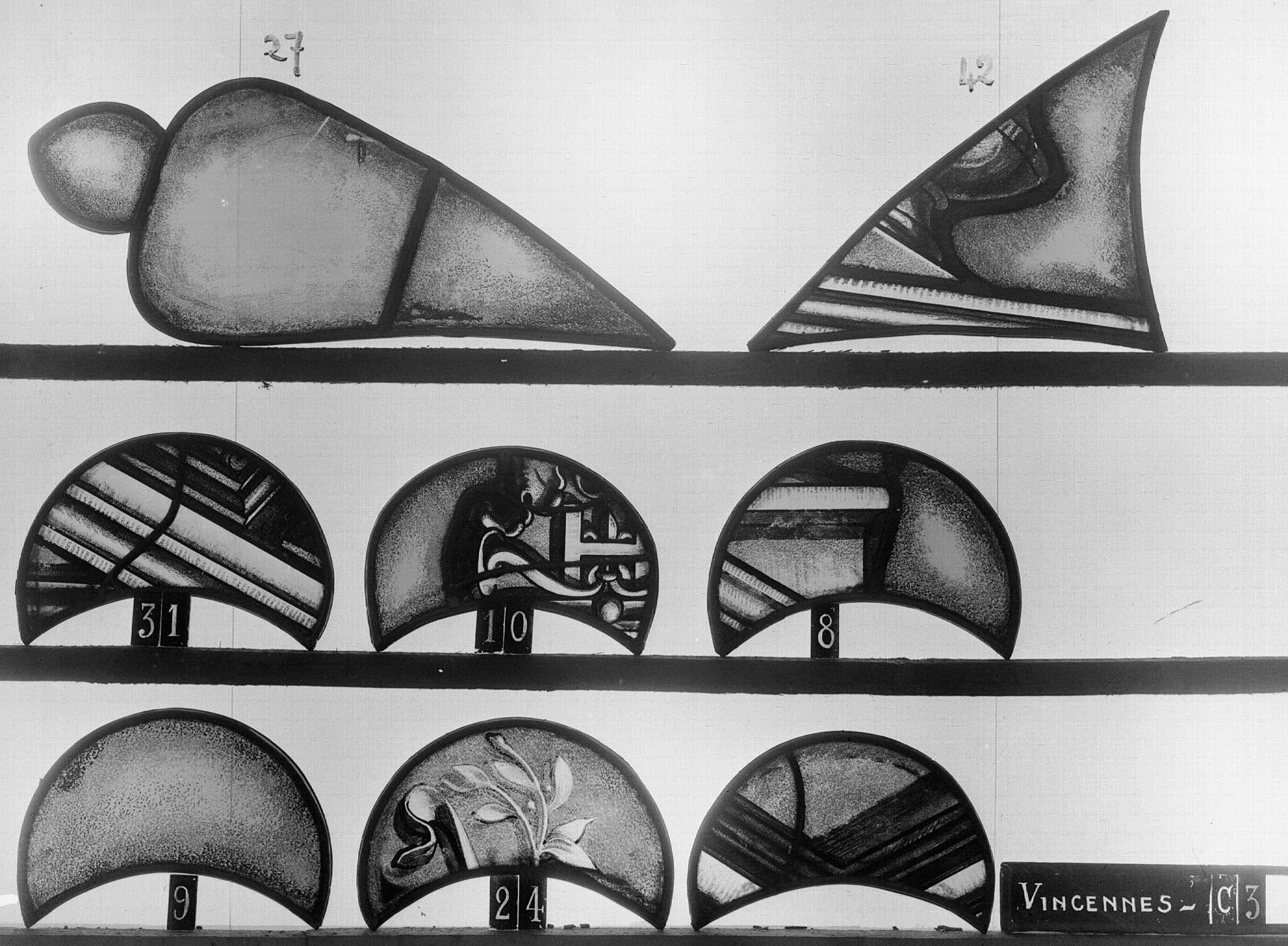 Chapelle : baie C, panneau de vitrail 42 38 9 10 24 27 31