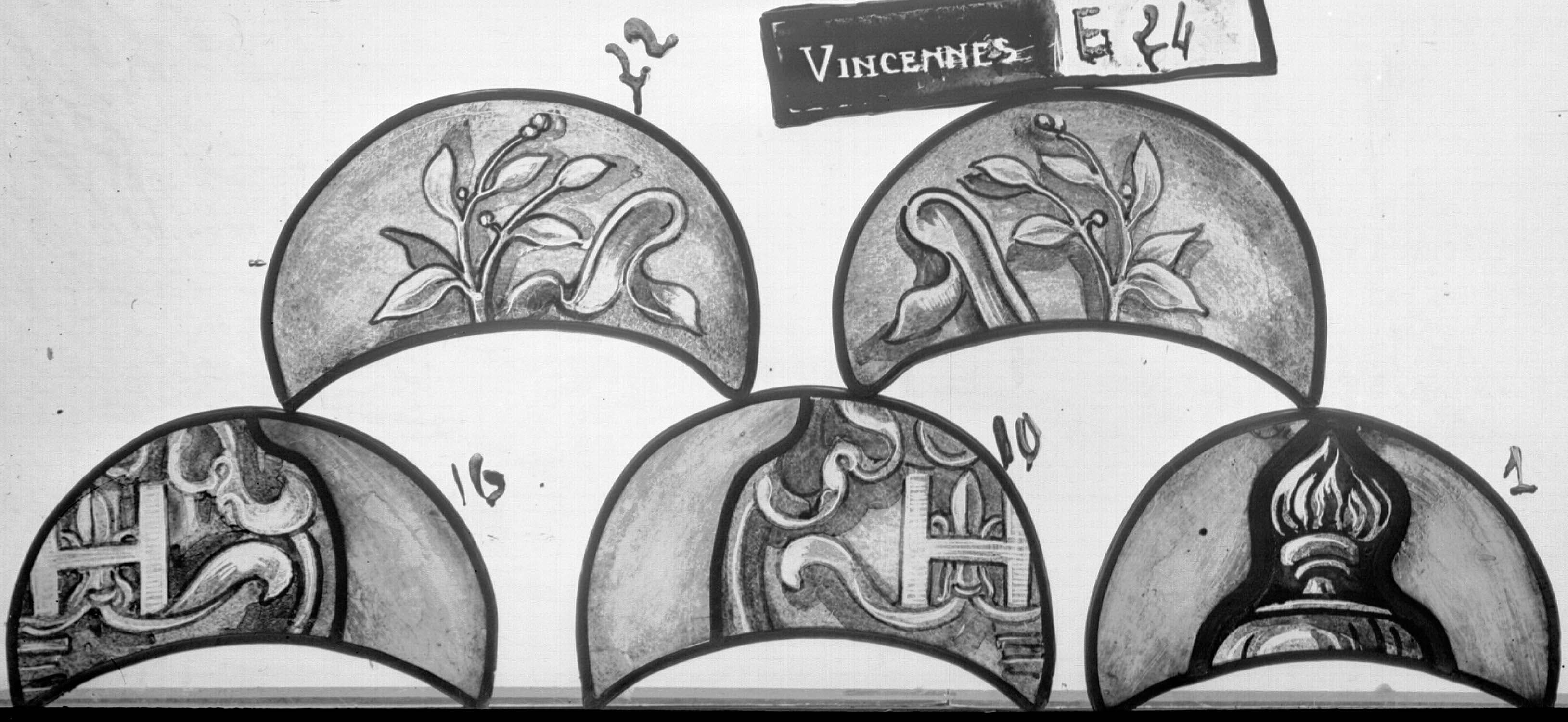Chapelle : baie E, panneau de vitrail 1 10 16 22 24