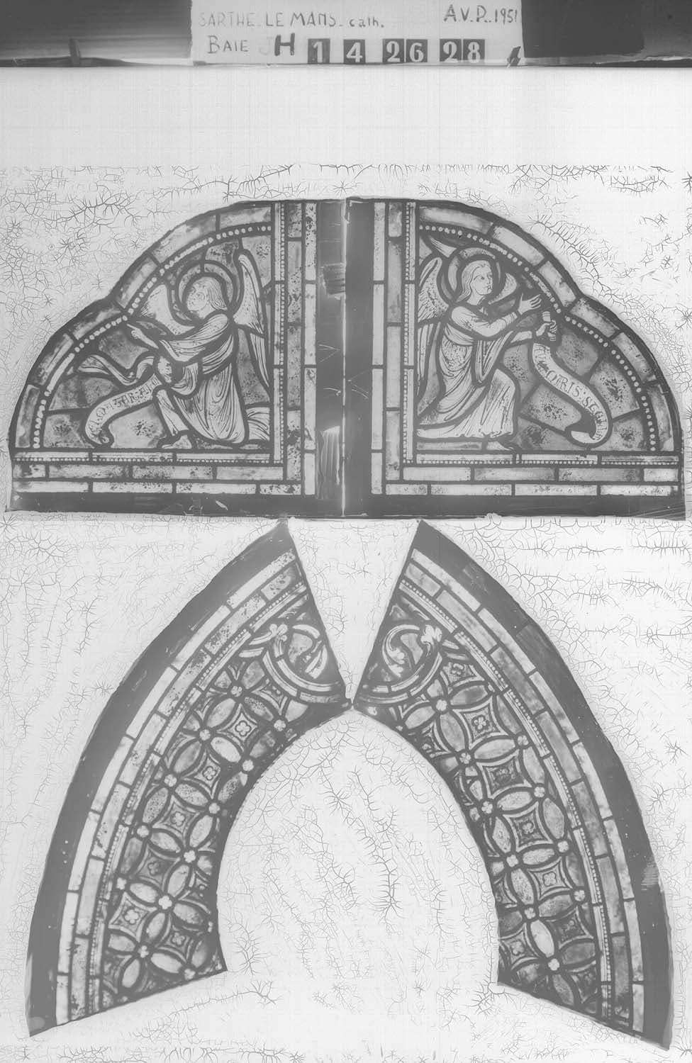 Baie H, chapelle de la Vierge, panneau de vitrail 1 4 26 28