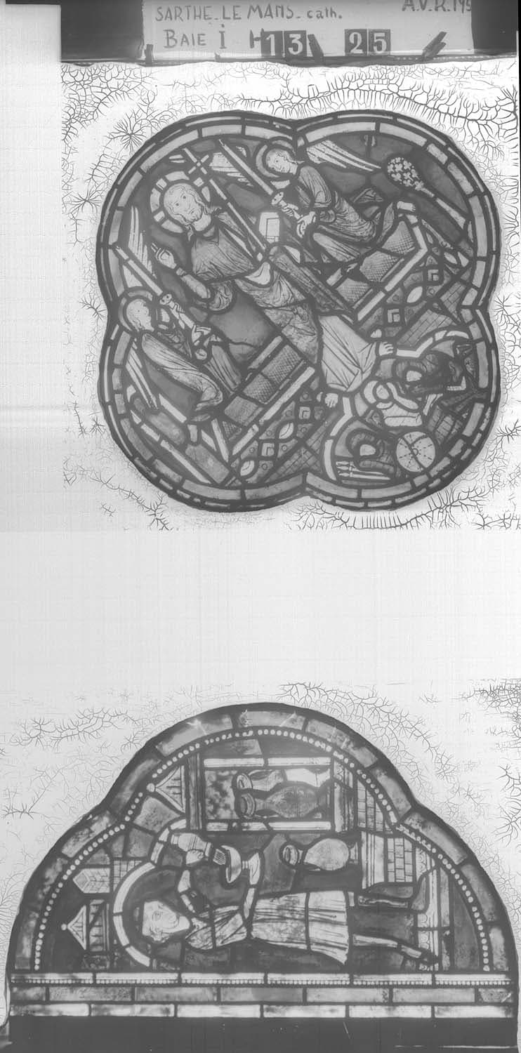 Baie H et I, chapelle de la Vierge, panneau de vitrail h25 Ib