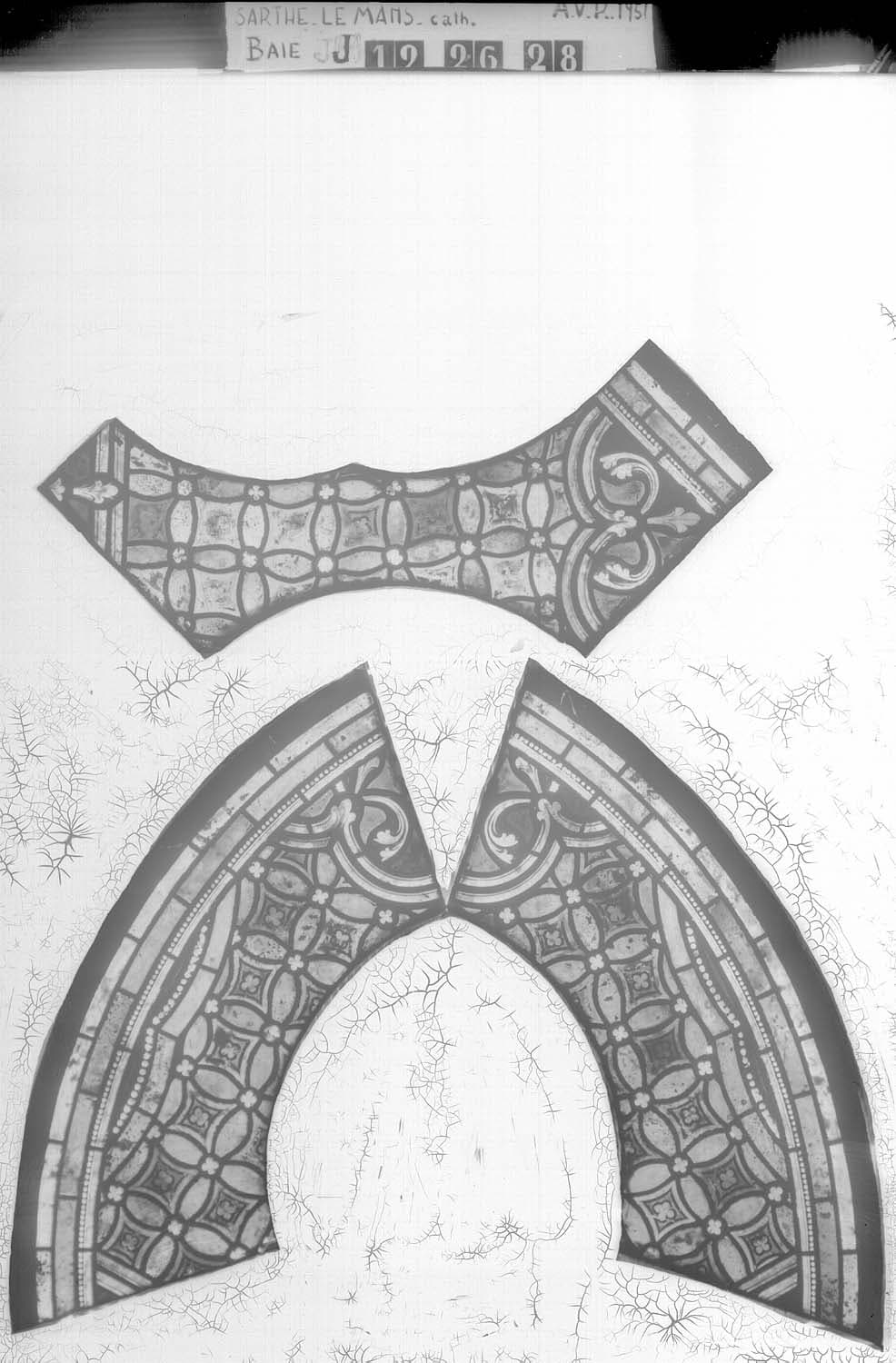 Baie J, chapelle de la Vierge, panneau de vitrail 19 26 28