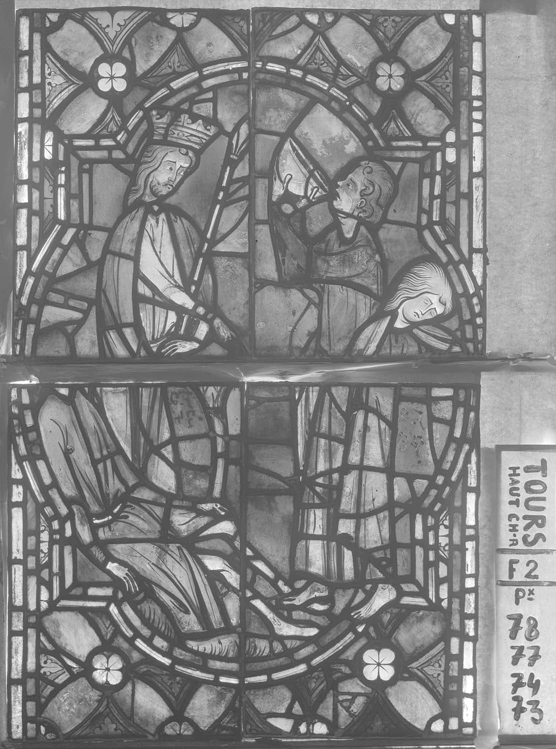 POP | Plateforme ouverte du patrimoineSaint Jean-Baptiste et saint Jean l'Evangéliste, baie haute du choeur, panneau de vitrail 73 74 77 78