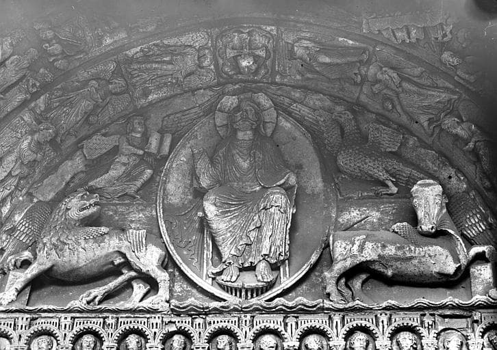 POP | Plateforme ouverte du patrimoinePortail sud de la façade ouest, détail du tympan : Le Christ et le Tétramorphe