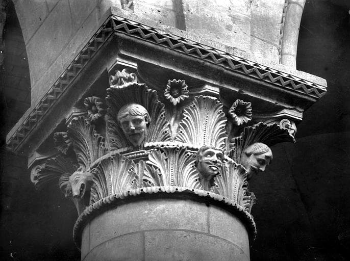 POP | Plateforme ouverte du patrimoineChapiteau de la nef : décor végétal et têtes humaines