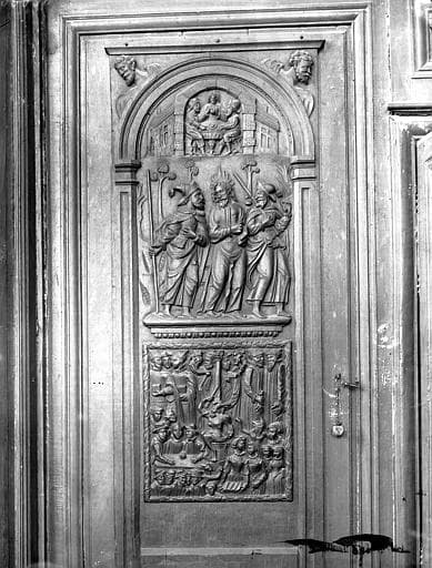 POP | Plateforme ouverte du patrimoineBoiseries de la sacristie, provenant d'anciennes stalles : Les Disciples Emmaüs, Le Christ aux liens