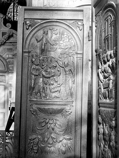 POP | Plateforme ouverte du patrimoineBoiseries de la sacristie, provenant d'anciennes stalles : La Prédication de saint Jean