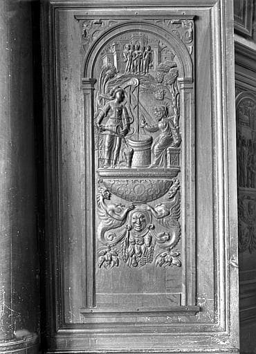 POP | Plateforme ouverte du patrimoineBoiseries de la sacristie, provenant d'anciennes stalles : La Samaritaine
