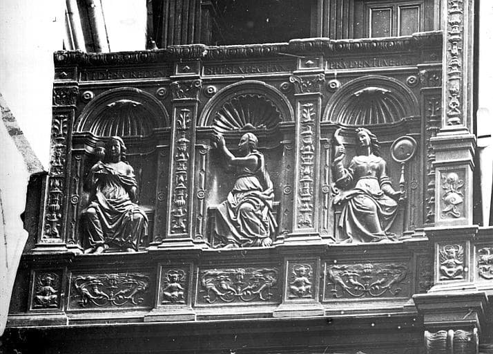 POP | Plateforme ouverte du patrimoineBuffet de l'orgue, côté gauche : statues des vertus dans des niches (la Foi, l'Espérance, la Prudence)