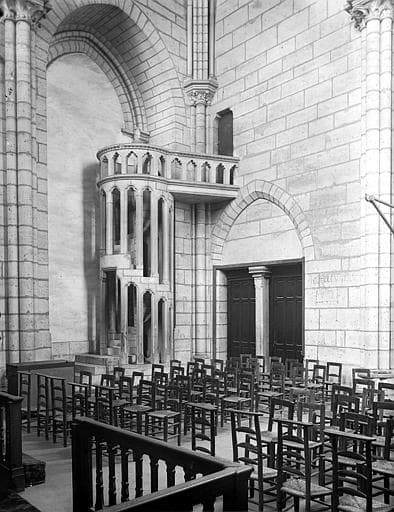 Vue intérieure de la chapelle au premier étage de la tour sud, avec la tourelle d'escalier