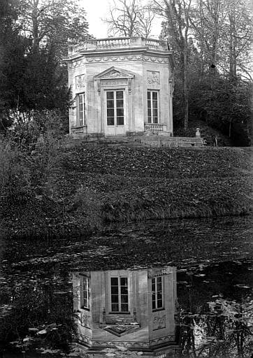 Le Belvédère ou pavillon de la musique, vu du bord de l'étang