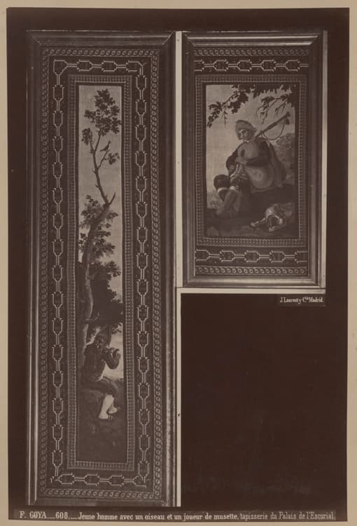 Tapisserie : Jeune homme avec un oiseau et un joueur de musette