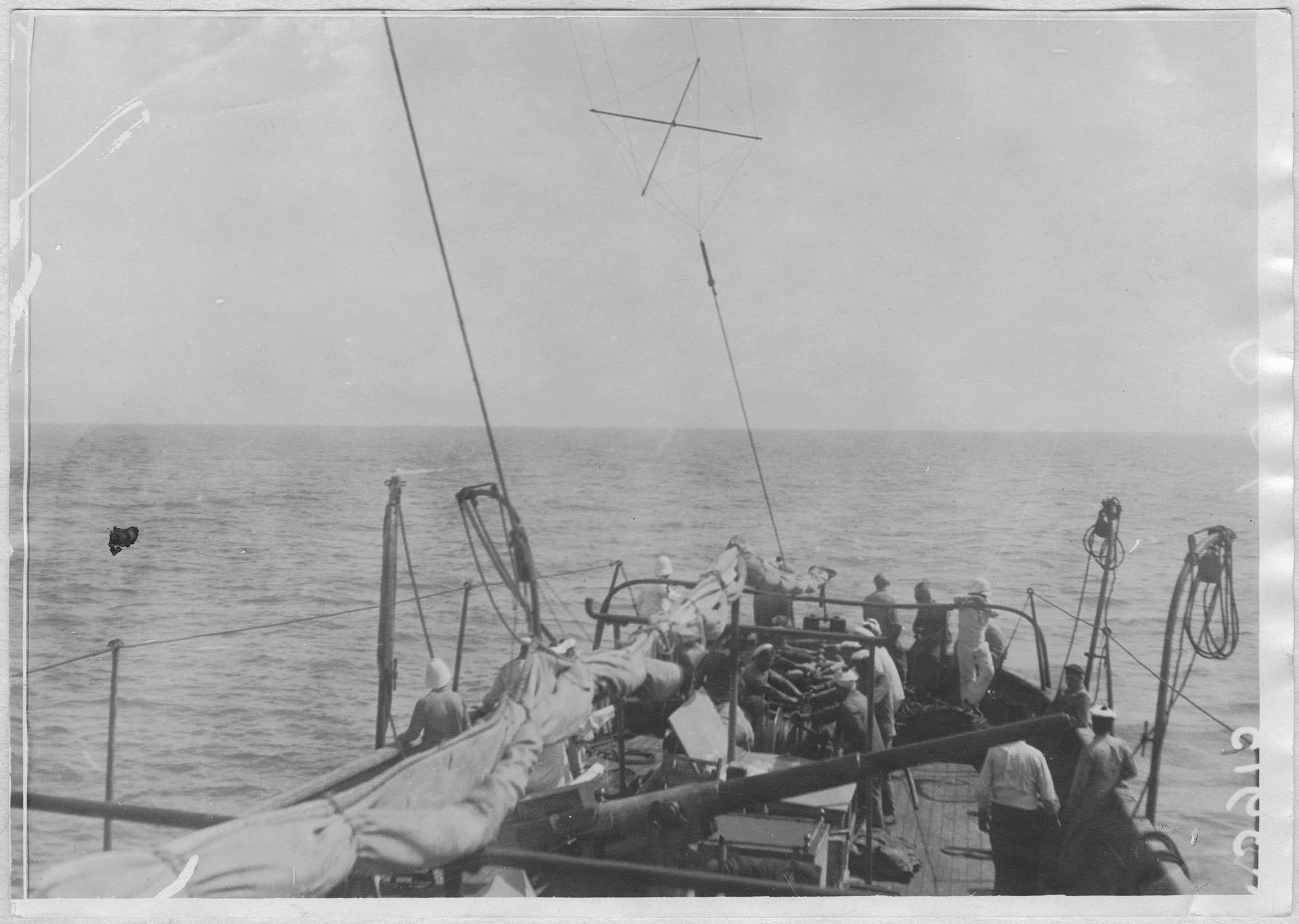 POP | Plateforme ouverte du patrimoineA bord du Laborieux. Sur la côte de Syrie. Drague de mines. Diverses phases de dragage à un seul bateau