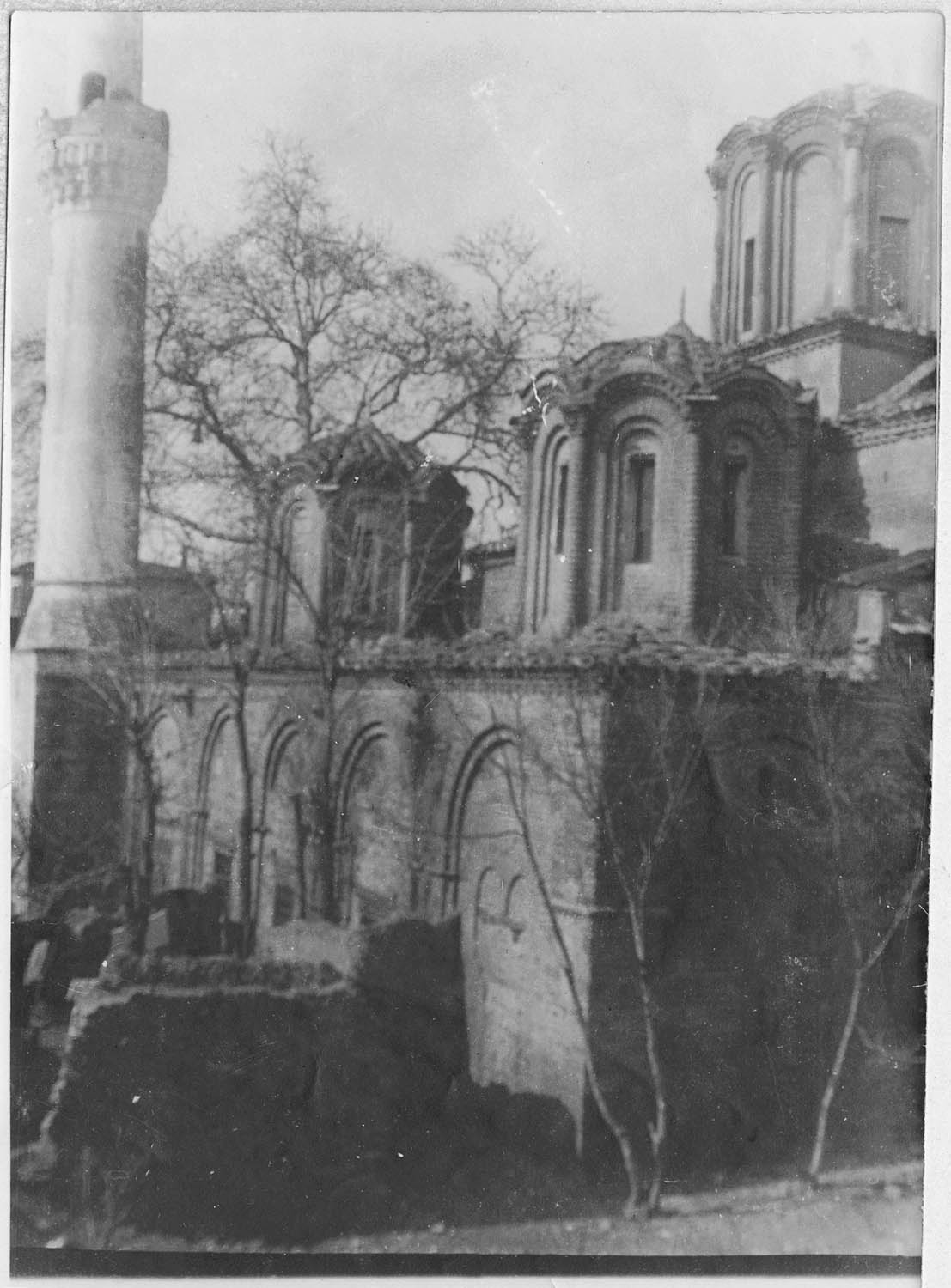 POP | Plateforme ouverte du patrimoineSalonique. L'église des Saints-Apôtres et le minaret de l'ancienne mosquée. Le minaret a été démoli en septembre 1917