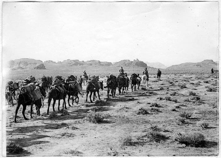 La colonne Pisani en marche : hommes et mulets
