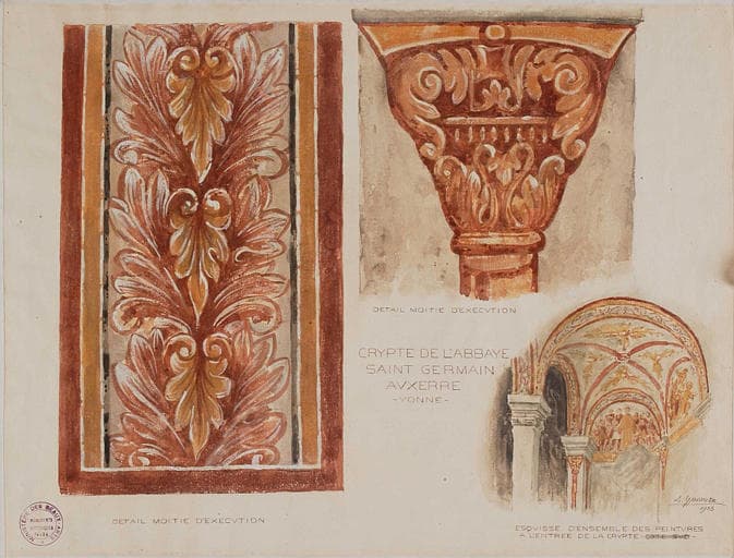 POP | Plateforme ouverte du patrimoinePlan de situation des peintures murales et détails, chapiteau peint et motif décoratif