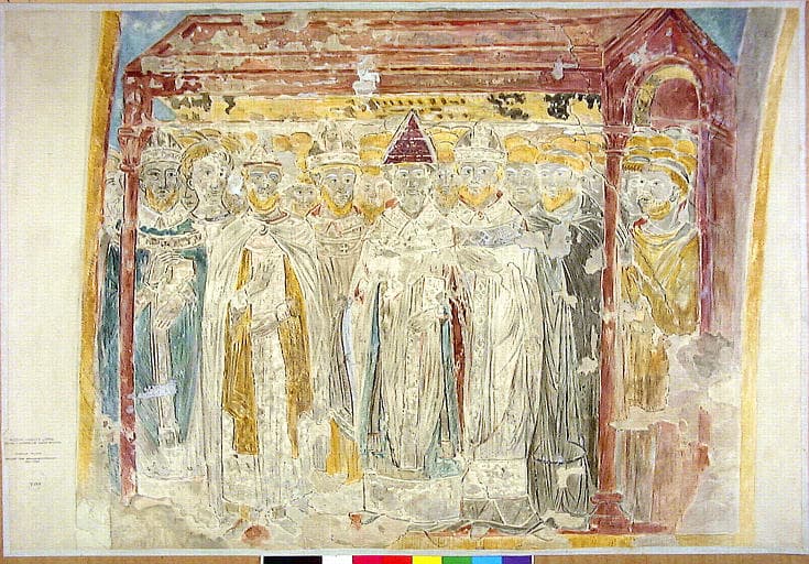 Scène de la légende de saint Michel, assemblée de religieux