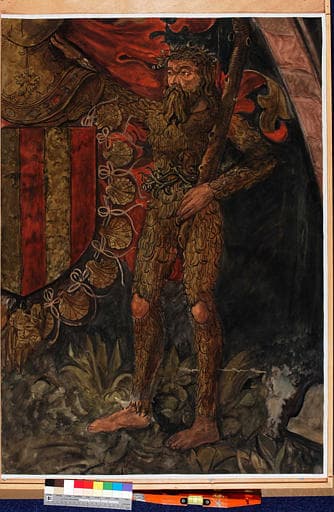 Détail des armoiries de Jean d'Amboise, homme sauvage à droite