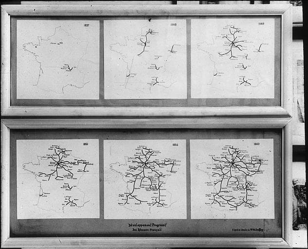 Cartes de l'extension du réseau ferré de 1837 à 1860