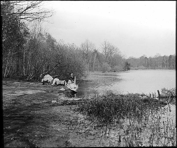 POP | Plateforme ouverte du patrimoineForêt de Rambouillet : femme lavant du linge dans l'étang du Moulinet