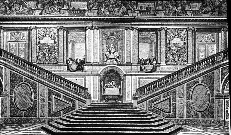 Intérieur, gravure représentant l'escalier des Ambassadeurs détruit en 1752